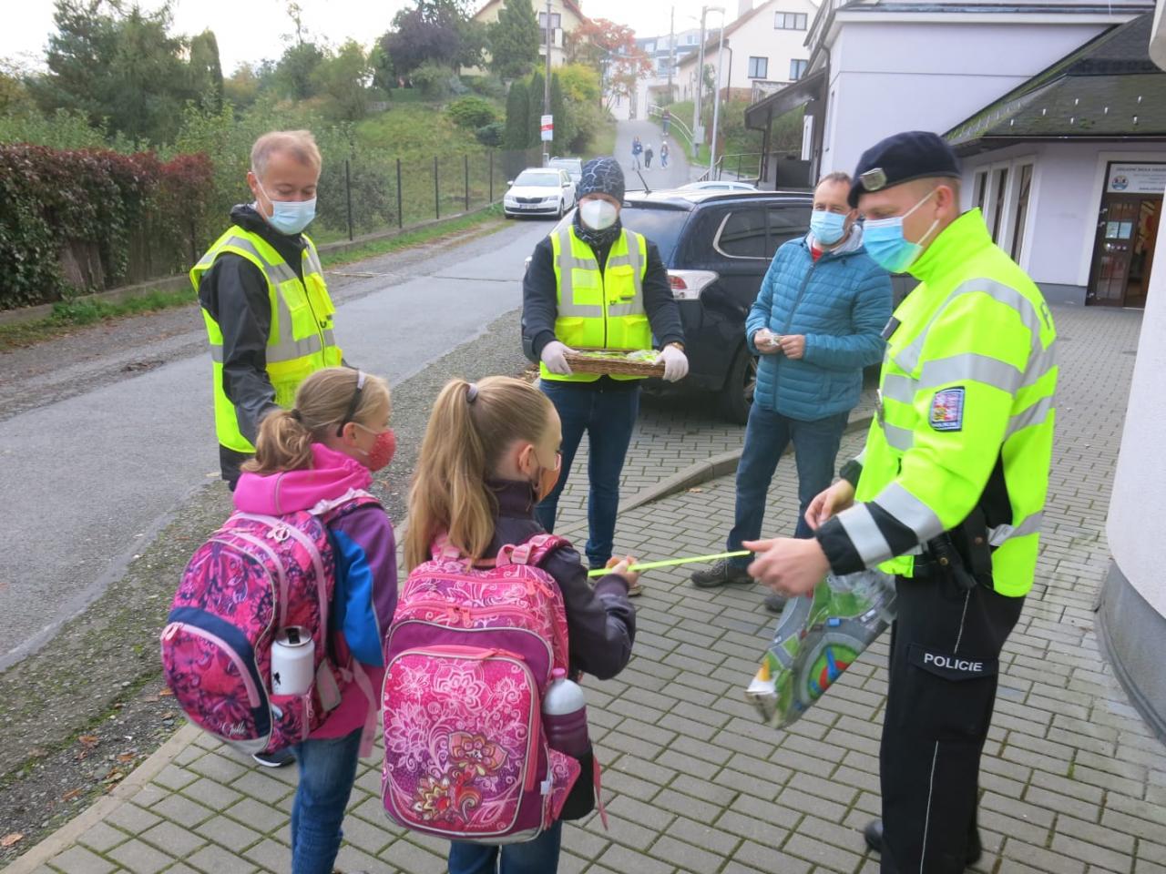 V rámci této akce představitelé města společně s Mgr. Jiřím Kupčíkem, ředitelem základní školy, a příslušníky místního obvodního oddělení Policie ČR před čtvrtečním vyučováním rozdali žákům přes dvě stě kusů různých reflexních prvků.