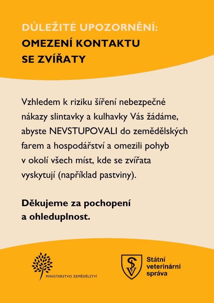 UPOZORNĚNÍ STÁTNÍ VETERINÁRNÍ SPRÁVY