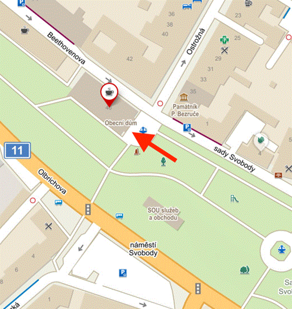 Přístup pro méně mobilní zájemce o očkování je bezbariérový (boční vchod do budovy z ulice Beethovenova, kde je k dispozici výtah).